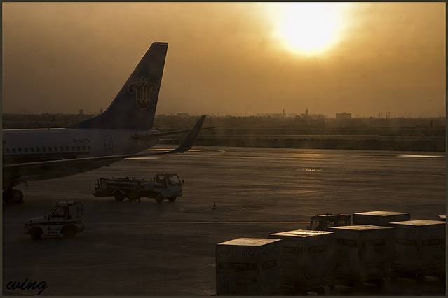 坐在飞机上等候起飞的时候,百无聊赖中拍了几张相片,然后飞向北京。