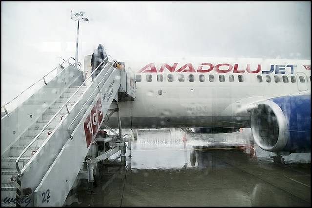 6点不到,我们就去柜台办登机,这里伊斯坦布尔也下起了大雨,这让我很担心我们第二天能不能坐得上热气球。还好在登机口看到开塞利Kayseri机场那边是天晴,我相信,我们的土耳其之行会在好天气下开始。在经历了晴天和暴雨后,终于在7点多飞向卡帐多西亚。