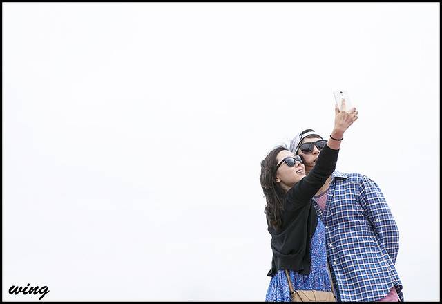 走在没有明确路标的城堡,很容易迷失方向,我们都是看着最高的城堡往上攀爬,时不时停下来回头看看身下的风景,这时被底下一对自拍的情侣吸引了,我也来个偷拍先。