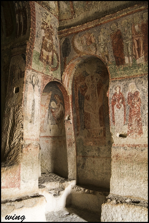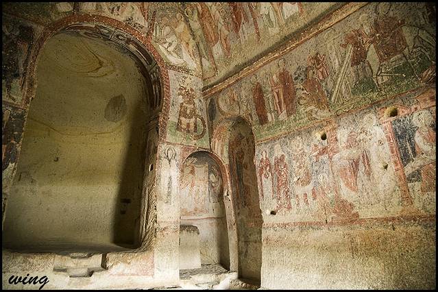 罗马推 崇多神教,对纪元初在巴勒斯坦地区兴起的基督教进行残酷镇压。其时,以著名使徒圣保罗为代表的耶稣基督的第一批信徒离开耶路撒冷,来到地势险要、适宜躲藏 的卡帕多西亚,建立小亚细亚的第一个基督教区,并开始修建教堂。公元4世纪初,广泛传播的基督教形成一股强大的政治力量。君士坦丁大帝及其继任人提奥多西 皇帝意识到,基督教是可用来巩固帝国统治的一种新兴力量。因此,他们改变政策,先是宣布宗教信仰自由,继而将基督教定为国教。