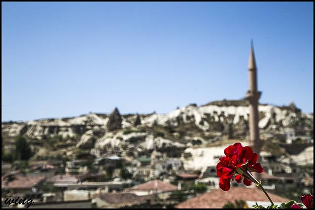 初夏的土耳其是一个鲜花盛开的季节,每家每户都会用不同的鲜花装点自己的窗户、庭院和阳台。站在这里,除了这月球地貌吸引我的镜头外,这些艳丽的花儿也谋杀我不少的快门次数。
