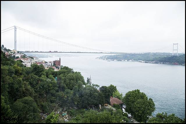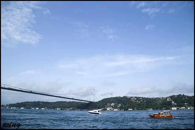 从T1线的Haski站坐到终点的Kabatas站,往前走就是新皇宫了,在Kabatas站去新皇宫会经过游博斯普鲁斯海峡(Bosphorus)的码 头,15TL/人/1。5小时,行程是过两座桥,一座是Bosphorus大桥,一座是Fatih大桥,去到黑海调头回到出发的码头。这时候就能感受到我 的左岸是欧洲,我的右岸是亚洲。从新皇宫出来,回往轻轨方向走,就能看到公车站,坐25E路就可以到如梅利城堡Rumei Hisar,不知道叫什么站,在车上看到左手边有一个石建的城堡就在那个站下车就OK,下车后过马路往回走几十米就是城堡的入口。回程和去程坐的交通线路 是一样的,先坐25E到新皇宫,也是看到新皇宫就下车,然后再转轻轨。这玩完这样个点,基就是第二天的行程了。