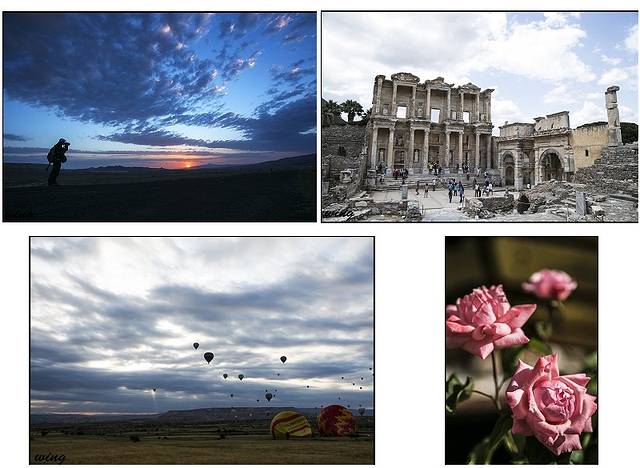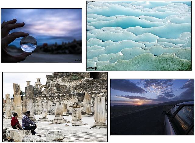 在这里,我开着车飞奔在卡帕多西亚的公路上;在这里,我放肆地投入到爱琴海的怀抱里;在这里,我坐在热气球里飞翔在格雷梅的上空;在这里,我徒步在有月亮 表面之称的神秘峡谷中;在这里,我迷失在以弗所的前世今生里;在这里,我踩在棉花堡雪白的岩石之上;在这里,有热情的土耳其人们每天用笑容来接待我;在这 里,我把看到的美景用我的镜头带了回来;在这里,我恋上了这迷人的国度而不能自拔。。。。。。