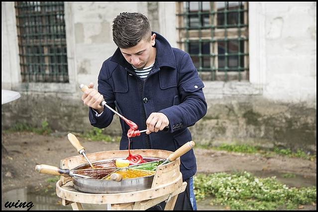伊斯坦布尔街头随处可以见到的一种小吃,可以直接吃,也可以加酱一起吃