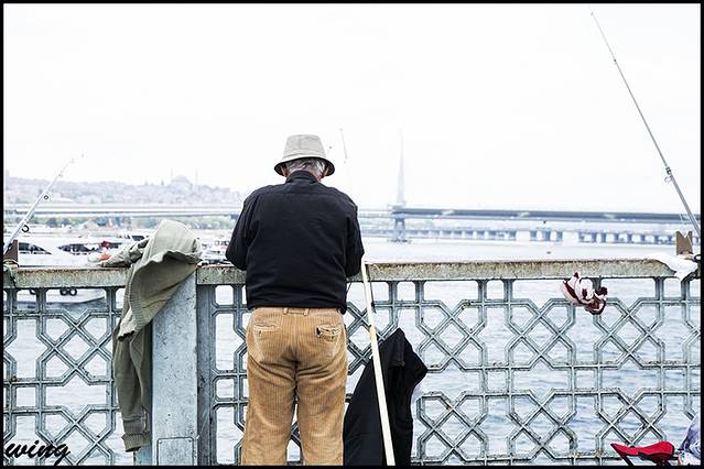 这座桥上每天都有很多人在钓鱼,我经过的这天是星期天,桥上更是密密麻麻站满钓鱼的人。过了桥就是金角湾,桥下的码头就是吃闻名的鱼汉堡的地方,星期天来到这里要排队,但鱼汉堡真的很好吃,排队也值得。