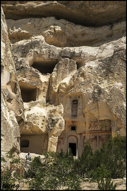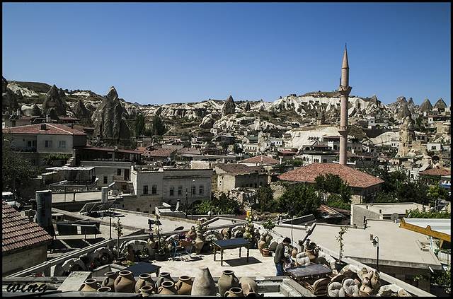 D2。(2014-05-31,星期六)伊斯坦布尔Istanbul SAW机场(ANADOW航空,TK7292,07:15AM)——飞——(08:30AM)开塞利Kayseri机场ASR ——酒店接机——卡帕多西亚的格雷梅Groeme——租车自驾—— 精灵烟囱(免费)——洞穴教堂(门票8LT/人)——阿凡诺斯古遗迹Avanos(免费)——Zelve济尔维,露天博物馆(门票:15TL/人)——拍日落(宿格雷梅Groeme的View Cave Hotel洞穴酒店, €31/晚/3人间,包早餐)