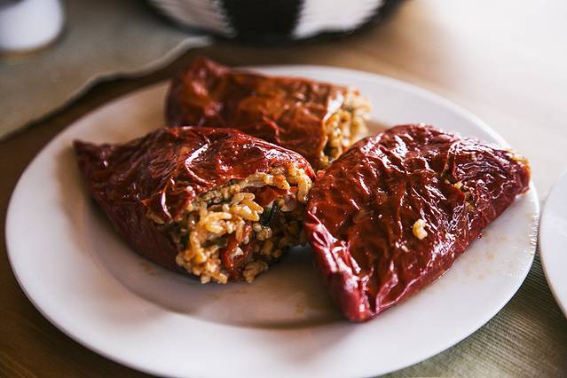 这是前菜,大大的辣椒里面装着和各种食材一起煮的米饭.味道丰富浓郁