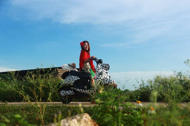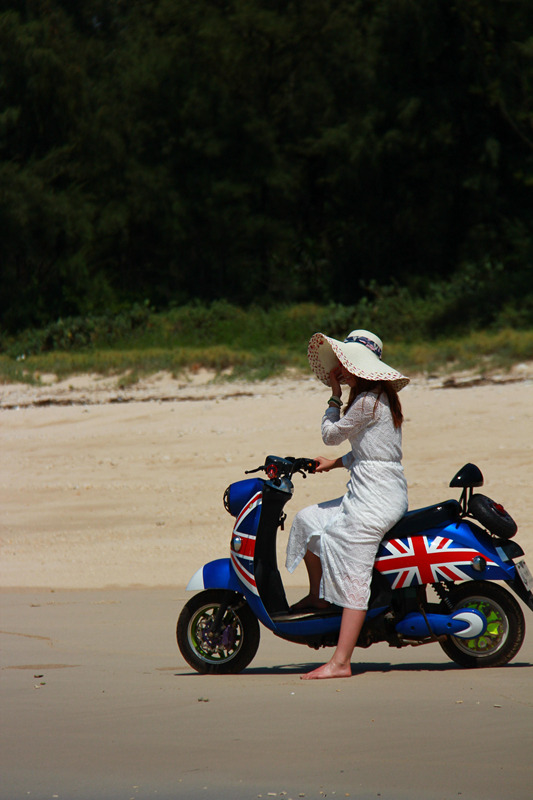 躲避过最毒辣的时段,骑着电马来到了贝壳沙滩,这时候海边还没有人游泳,安静的沙滩上慢慢的都是散落满地的贝壳。