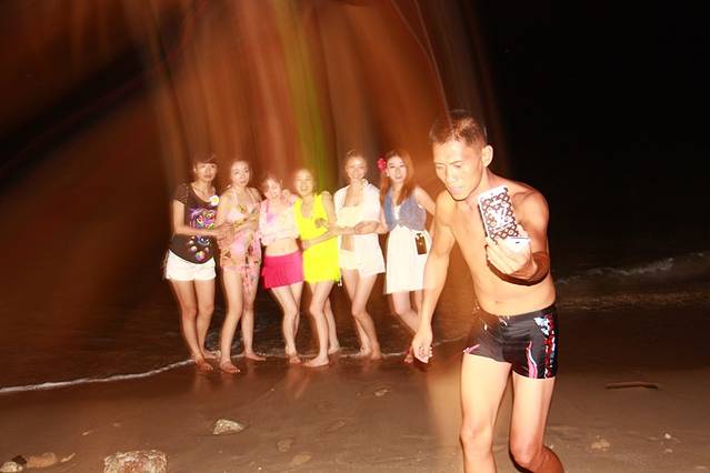 吃过晚饭后停电了。。。在岛上停电时常有的事 ,我们也不大惊小怪了,躺在客栈的吊床上看星星,一起的几个四川美女和小黑约着一起去海边夜捕鱼,看星星,我们也一起去凑个热闹。