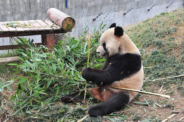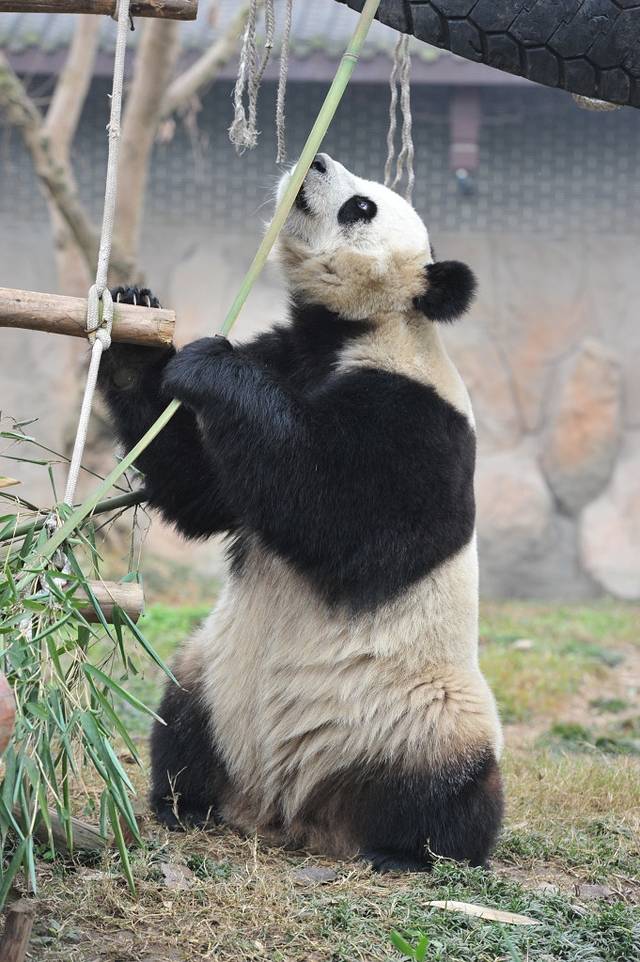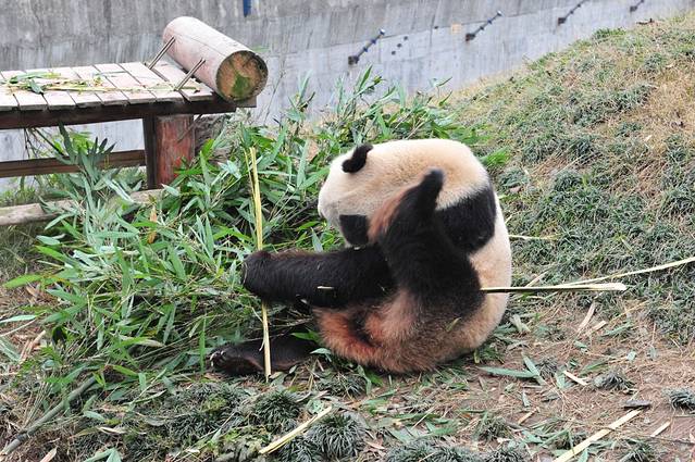 不过它真是吃货一枚,从我们看见它就在一直不停地吃竹子,这个姿势一直保持不变。