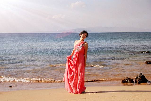 今天是在Maui的最后一天,从家里带来的婚礼时穿过的礼服终于要登场啦。