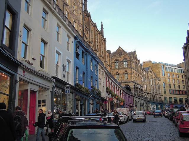 最后要给文青们推荐的是Grassmarket!就在城堡附近。适合拍照,掏旧货,二手书,卡片,复古服装之类的。道路两边的楼房都刷成各种颜色,拍照很漂亮。路很窄,两边停满汽车,运气好还能碰到老式车。文艺指数报表!
