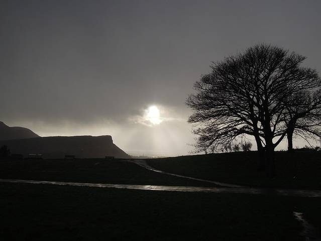 那天的天气真是太糟糕了,出门时还是万里无云,走了几步,刚到Calton Hill就下起雨来,仿佛乌云就跟准了我们似的,雨走到哪下到哪。下雨天气前后对比: