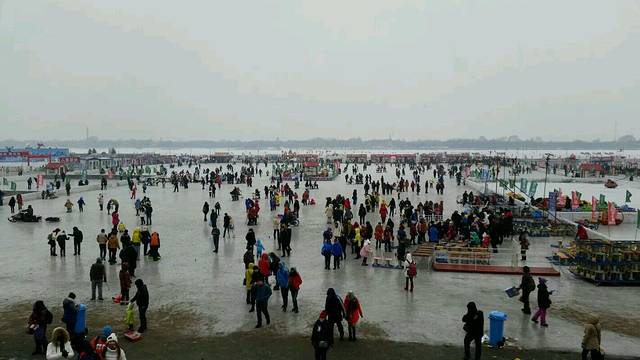 中央大街走到底就到了松花江,天啊,结冰了的江,天啊,可以在江上走。虽然电视上看到很多,第一次见到真是草鸡激动啊。上面有很多娱乐设施,各种滑冰,我们坐了冰上马车,带着在冰上走一圈,走到江远一点的地方,师傅会停下来让我们拍照,让我们坐在冰上,像陀螺一样转圈圈。之后也玩了几个项目,最好玩的是图上那个,前面有一辆车拖着2条用绳子连在一起的轮胎,人坐在轮胎上。刚开始慢慢的起步,会感觉少许雪飘在脸上,之后就会加速,有时会急速转弯,惯性把后面的轮胎甩出去,人也会不自主的跟着跑。会感觉自己已经跑到雪里去了,一堆一堆的雪迎面而来,不知道是风太大眼睛睁不开还是雪太多眼睛睁不开,结束之后就成一个雪人⛄了。