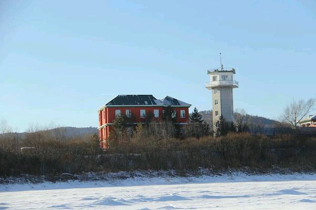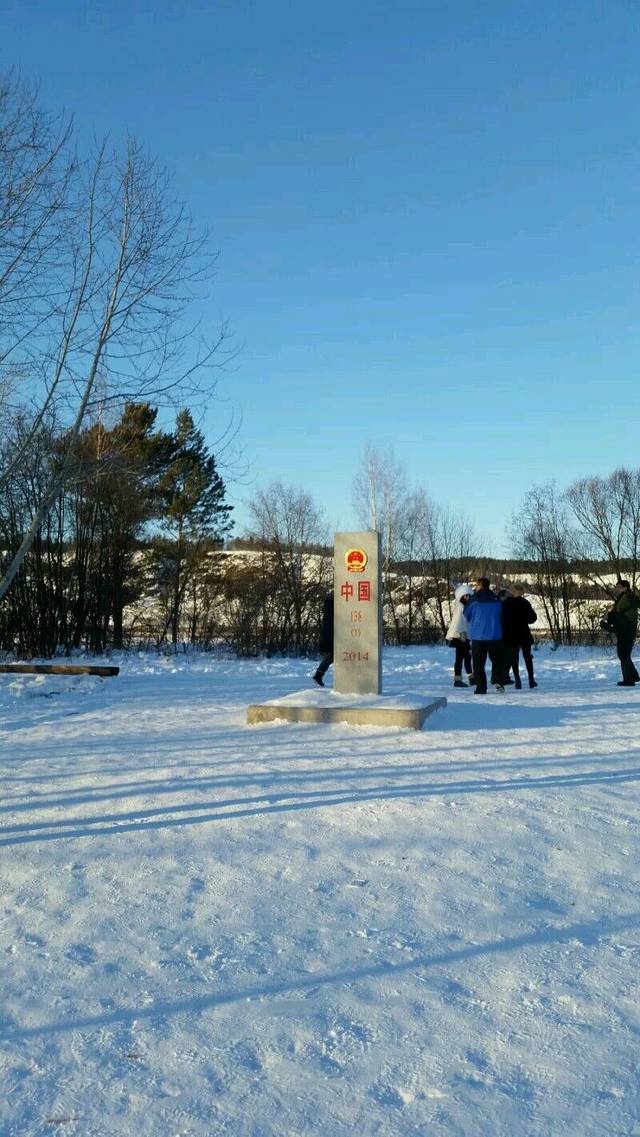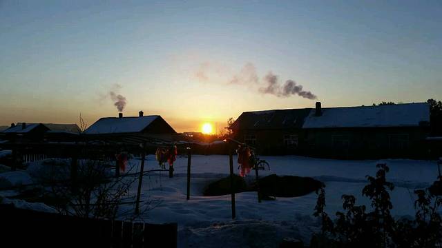 第二天早上出发去北红村,我们7个人包的一辆车,师傅会带我们去景点,住的地方也是师傅安排的。可能北红村太偏了,手机一直都没有信号。去北红村的路上去了几个小景点,看看雪就走了,太冷了。因为带着口罩,气都往上跑,眼睫毛一直都在结冰中,鼻孔前面一点也是冻住的,有时候呼气都感到了冰。快到中午的时候到了住的地方,是当地村民的家里。家里好暖和,不是用的暖气,都是烧炕的,墙上都是热热的,睡觉也是炕上,好兴奋的。外面没有吃饭的地方,只能在家里吃了饭,地地道道的东北菜呀,好吃爆了,分量也很多。吃了中饭我们就自己出去逛逛,走到了和俄罗斯交界的黑龙江上,栅栏对面就是俄罗斯噢。还看到了守护边界的士兵呢。走走逛逛发现有一个小坡上有人玩滑梯,用木板或者轮胎从上面滑下去,越冷越有玩的心情呢,玩的手脸都冻住了,摔到雪里还在继续。