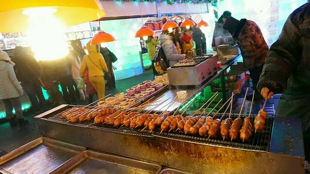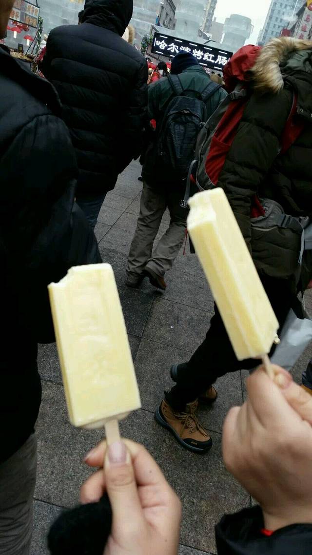 中央大街是很长的一条街,有卖吃的,有卖衣服,还有很多话说是俄罗斯工艺品的店(那什么,你们懂的)。当然第一件事就是吃马迭尔冰棍,这么冷也有好多人买的,一种是香草的 ,一种是普通的,都好吃,香草的奶味重一点。我在哈尔滨呆了3天,每天都来吃一根。冰棍就摆在外面的一个窗口卖,都不需要冰箱的。里面的房间可以坐着休息,觉得东北到处都有暖气的感觉好幸福。再往后面走有很多小吃集中的地方,有红肠 小吃点心 ,红肠没有那么好吃 还行吧。吃完就回去睡觉了,明天继续逛。