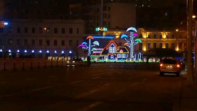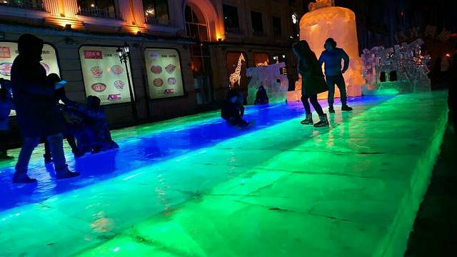 晚上到的哈尔滨,出火车站看到冰雕时惊呆了(原谅我二十几年没见过冰雕),之后才知道 ,哈尔滨马路边到处都是大大小小的冰雕。 下了火车才真的感受到了什么叫北方,露在外面的手和脸刺刺的冷,说话都是白气,赶紧带上所有的装备,只放两个眼睛在外面,手冷的都不愿意拿出来拍照,所以出现了下面这些奇怪照片。我们回酒店放下行李就直奔中央大街了,中央大街马路对面有个小摊,真的很好吃, 买了好多人推荐的烤冷面,棒棒哒。 中央大街两边也都是冰雕,果然是冰城啊,在彩灯的照射下,有种童话故事的感觉。