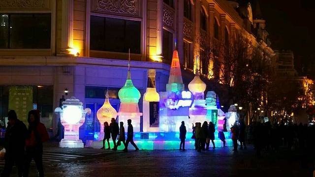 教堂离中央大街不是很远,我们是走过去的,路上说说笑笑很快就到了。白天的中央大街与晚上很不一样,晚上在灯光下是及其妩媚的,白天这些有点欧洲范的建筑,还有超大的冰雕,显得大气许多。白天才看出有的冰雕原来是这么大的,完全想象不出是怎么做出来的。