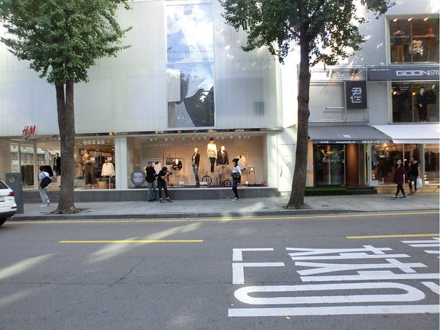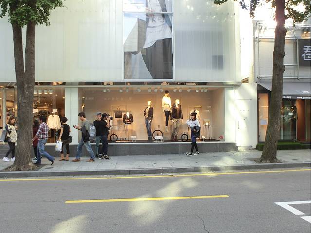 跟弘大浓烈的艺术气息不同,梨大充满了书香气息,这里的学生衣着打扮也没有弘大的张扬个性,而更偏向素雅清淡。这里卖的衣服的风格也偏向淑女斯文风格。