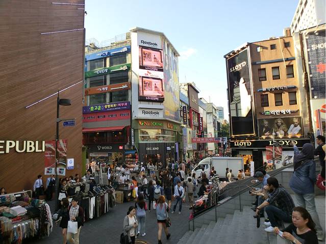 超爱弘大,弘大给我的感觉太好了。这里也集中着很多韩国年轻人,打扮精致用心,不论男女~卖的衣服也非常韩范,大爱~
