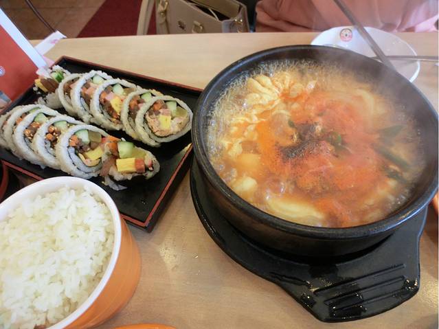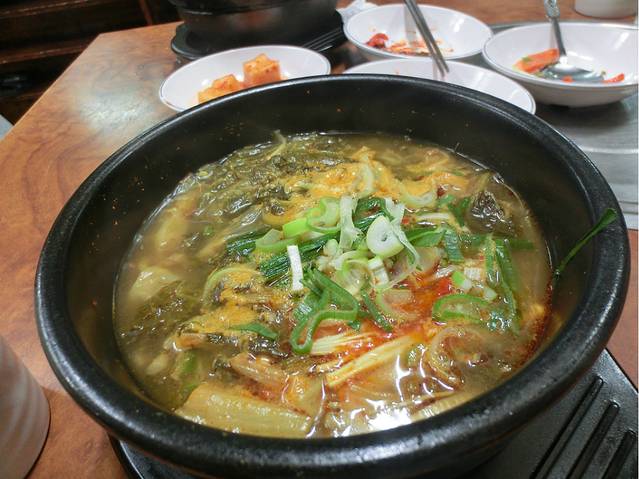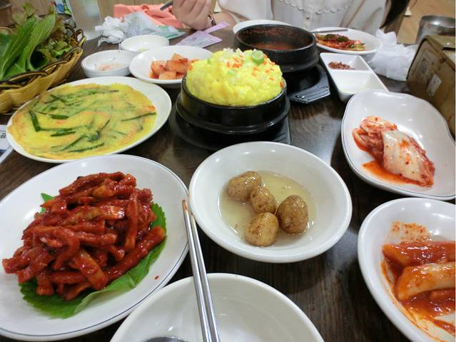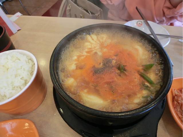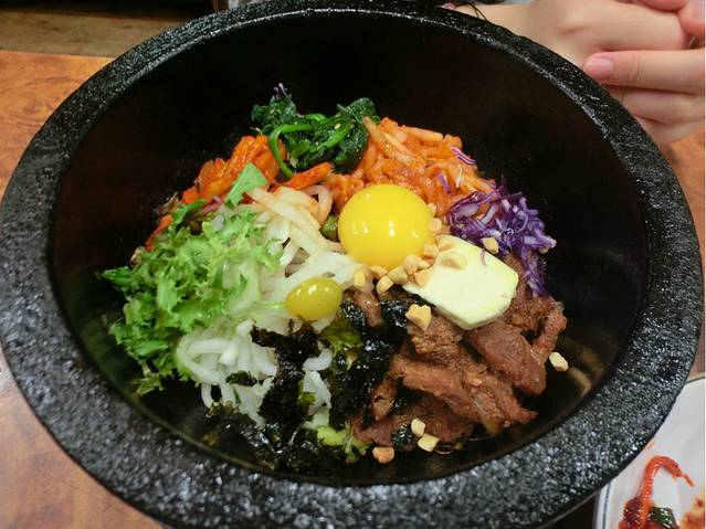 没有为之一震的感觉,但是还是值得一试~全州拌饭属韩国最有名的拌饭,配料多样,营养丰富,也算是到此一游的纪念啦~我们点了一份全州拌饭,一份白菜牛肉汤,都挺好吃哒!
