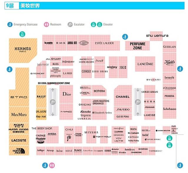 明洞乐天免税店位于乐天Avenuel的9-11层,护肤彩妆集中在9F,韩国本土品牌如nature republic、etude house、 banila.co、it's skin等的柜台都非常小,品种不全,比如natrue republic只有护肤而没有彩妆。而且人挤人真的非常吓人!人实在是太多了,导购能跟你说上话就很不错了,就别提购物体验了