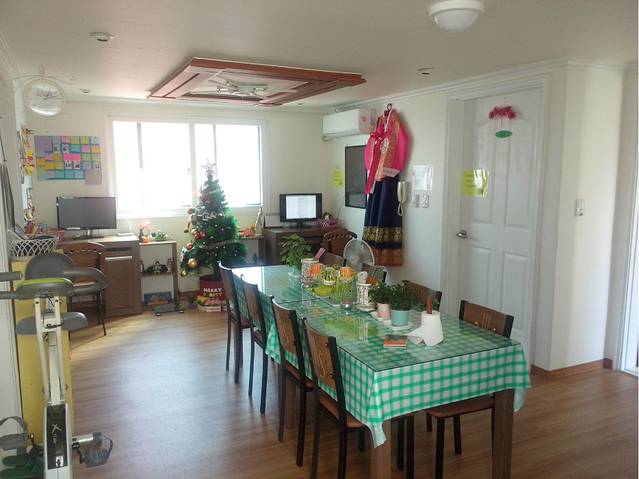到了入住当天又再次坑爹了,所谓的独立卫浴竟然是在房间隔壁的浴室以及走廊另一头的卫生间。一分为三真是好“独立”啊 ....我们直接找了房东,善良的房东太太就帮我们换到了一间独立卫浴三人间,不过因为第二晚这间房就有人入住了所以我们第二个晚上还得回到原来的房间.但是房价减免5000韩元。