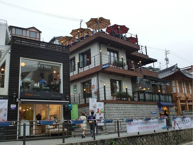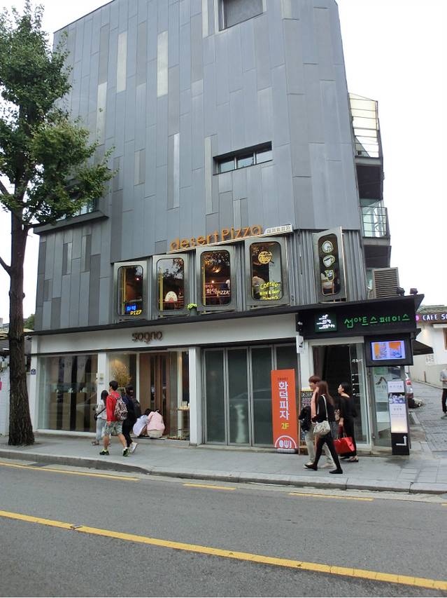 路线:我们当时是直接乘出租车从光化门过去的,直接到beansbins,车费是4000won。路线是光化门出来向左走,然后就在第一个路口左拐直走,途中会经过景福宫侧门,一直走,大概20分钟的样子,直到有一个上坡的岔路口就到三清洞的入口。