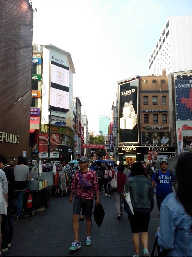 来韩国旅游的女生大多是两个目的,一是追星,二是血拼大部分韩星对于我来说都长一样所以追星就不用预我了.这六天每天都少不了购物,各种买衣服买护肤买彩妆。住在弘大的时候必须都会逛到11.00pm以后才回旅舍。两个女生买起东西来也顾不上时间,以至于有几个观光景点不得不放弃掉了.购物的时候像打了鸡血,到玩的时候也玩不动了,乐天世界也没去成.. 所以要跟男朋友来玩的要注意了哈哈。
