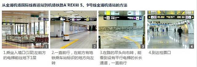 路线:下图是我搜来的路线图,但实际上当时我们去的时候正在装修,样子跟图中完全不一样了。不过一直会有AREX空港铁道的标志指引,非常方便。只要在入境口出来往左前方看,看到有一排exchange窗口和atm机,它们前面有个往下的扶手电梯,从那往下走,然后一直跟着标识走就好,途中会经过乐天mall。