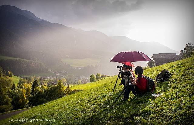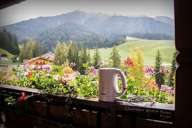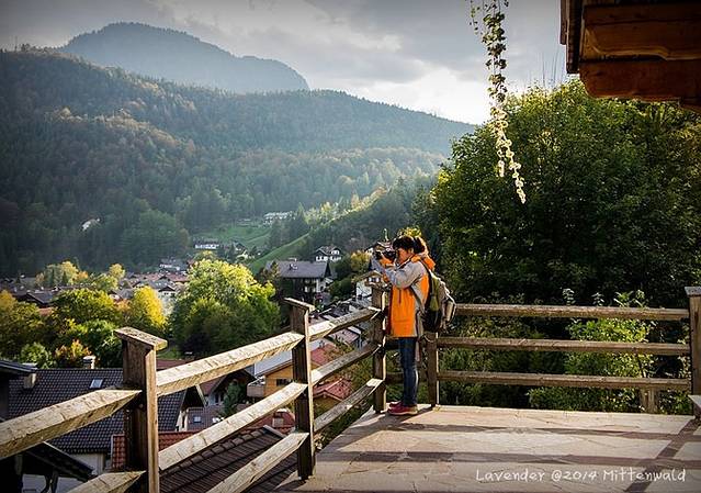 我们一路摸黑来到全景观景平台。其实这是一家酒店Hotel-Garni Drachenburg所属的花园平台,曾经也想定这家酒店,就是太远了放弃了。现在想想真是英明决定,米腾地形也是上上下下的坡地,好多民宿都在坡道上,拉行李很不方便而且累死,只有火车站一带有些平地。