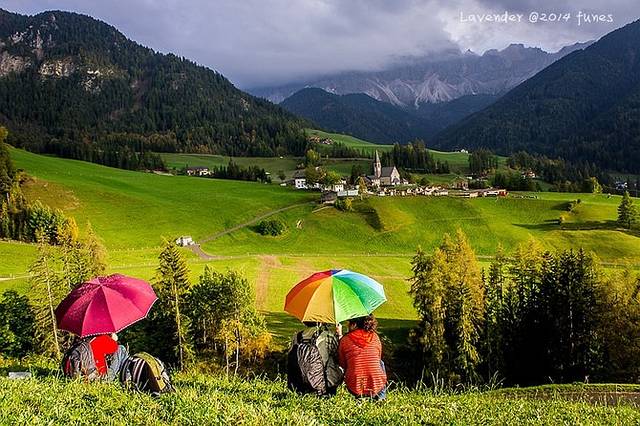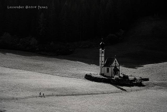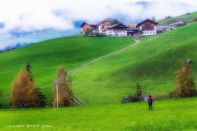 富纳斯最好看的风景就是以Santa Magdalena教堂为视觉中心的风景,在M村北边,是坡地,虽不高但走起来还是挺累的。山谷里风云变化太快,时而大雾时而晴天时而下雨,往往看见天不错撒丫子就跑,却也来不及赶到坡上。