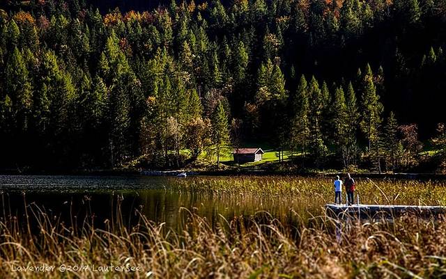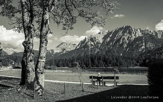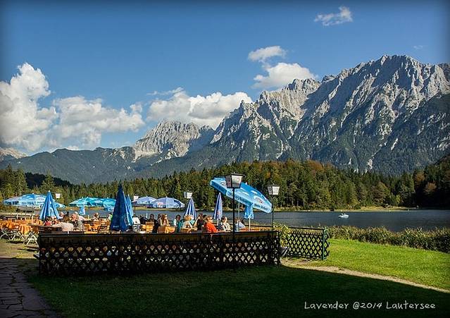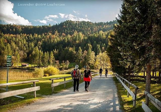 小镇西边的劳特湖Lautersee,天气好的时候,小镇上的人都跑到劳特湖去了,蓝天白云的山脚下,幽静的湖边,吃喝晒太阳,骑行、健行、发呆,真的很惬意。