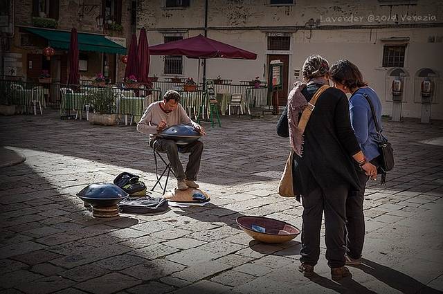 不知道这是什么乐器,发出的声音很浑厚,嗡嗡的余音缭绕,像天国传来的乐曲,好听极了,让人欲醉还休。刚开始一直以为是教堂在放音乐,后来才发现原来是这个艺人演奏出来的,顿时很敬仰!