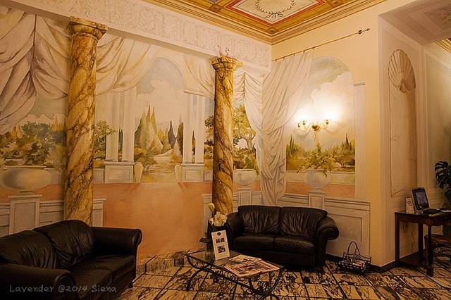 大堂墙壁都是手绘壁画,很漂亮!