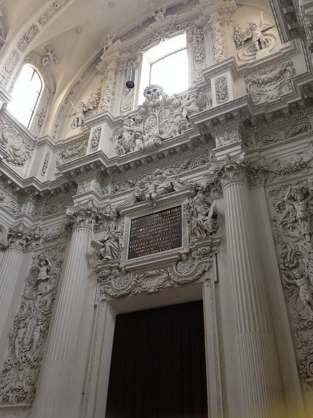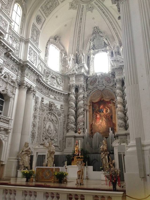 王宫花园就在慕尼黑王宫的后面,但要进王宫的话要从花园出来绕一大圈到王宫的正门去。而铁阿提纳教堂就在花园出入口的对面,所以可以先游览教堂。我去的时候教堂门口正在维修,不过还是照常开放的。