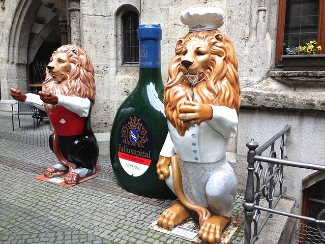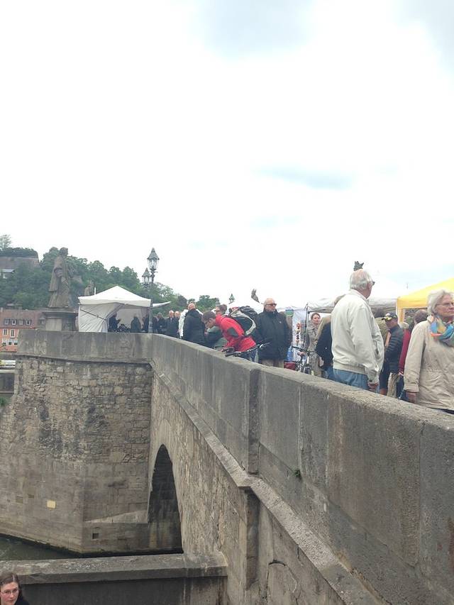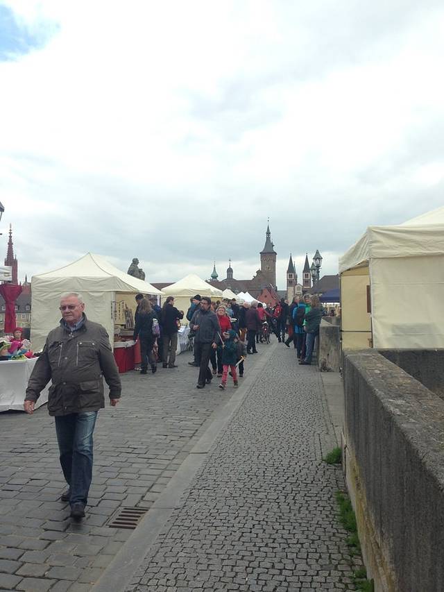 老桥上有各种各样的摊位,基本上都是DIY的手工艺品和食品,很多人手里拿着一杯葡萄酒边走边喝,想起了维尔茨堡的葡萄酒非常有名。