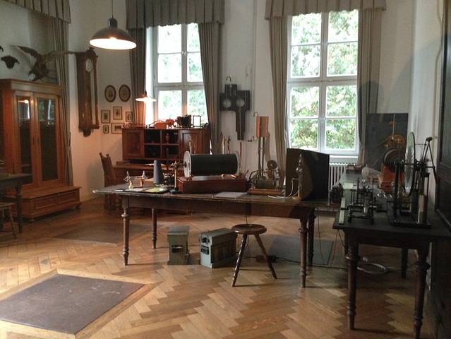 之后看看还有一点时间,就打算到伦琴博物馆看看,正好就在火车站的附近。其实说是博物馆其实是不太合适的,因为实际上就只有两间位于大学楼内部的房间是用于参观展览的。伦琴当初就是在这里发现了X射线,并因此获得了诺贝尔物理学奖。