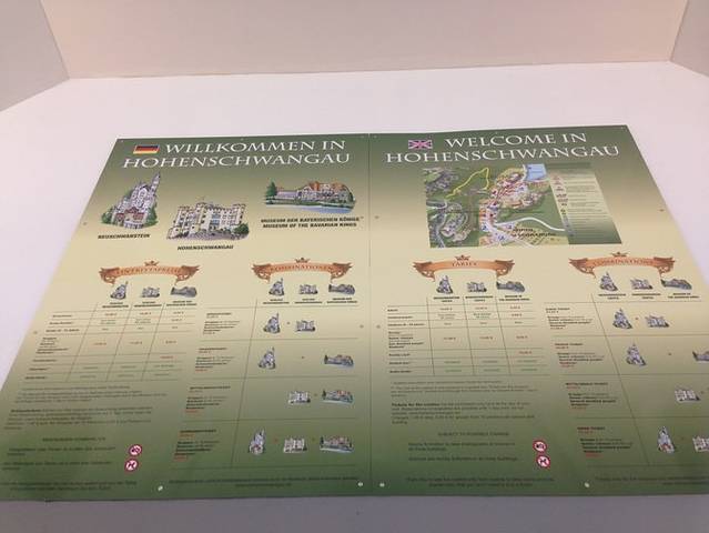 门票分为好几种,有单独一个景点的票,因为实际上总共有三个景点,分别是新天鹅堡、高天鹅堡还有一个巴伐利亚国王博物馆,也可以买联票,就是三个景点任意组合,可以两个也可以三个一起,我排队买票的时候也在一边研究着买哪种票,看哪一场的。最后估摸着时间,决定买新天鹅堡和高天鹅堡的联票,21欧。貌似这也是最多人选择的一种,不同的联票都有自己的名字,新天鹅堡和高天鹅堡的联票叫Kings Ticket,其他还有什么Prince Ticket等等。