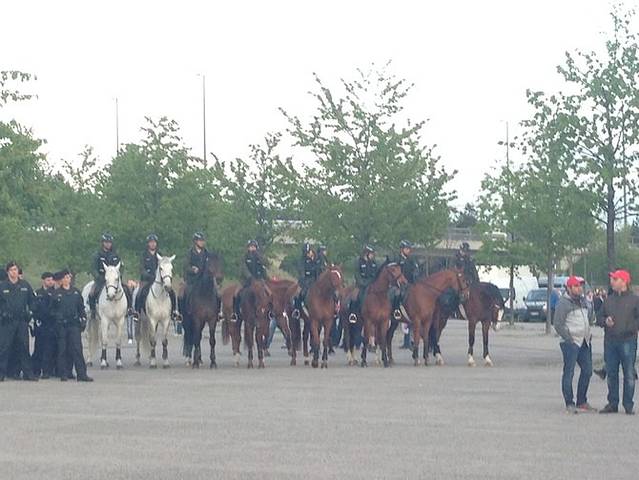 好不容易到了,其实当时不知道到了,反正跟着下车就对了。一下车那就是红色的海洋啊,一路上还看到好多拜仁球迷举着牌子求票的,不过按照当时的情况,除非奇迹出现,人品大爆发,不然应该是没戏的。到的时候距离开赛已经不到一个小时了,有很多球迷已经喝高了,随地小便的看到好多,整个空气中都弥漫着一种不好的味道。最搞笑的是,竟然还有集体站成一排小便的,而且还有人在旁边照相,我要当时不是一个人,要有人壮胆的话估计也冲上去拍照了,哎,可惜了。