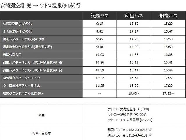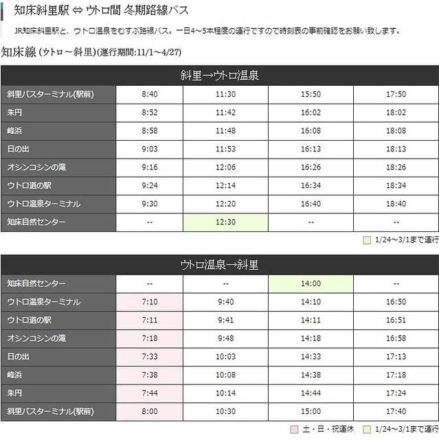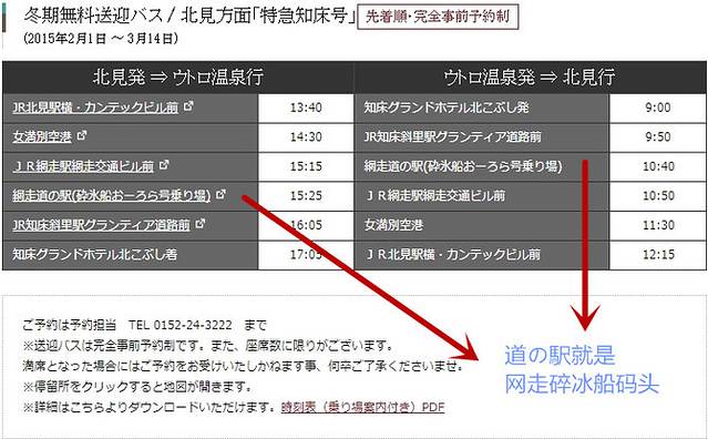 TIPS:这几个酒店有免费班车到知床斜里JR,需要通过邮件提前预定。