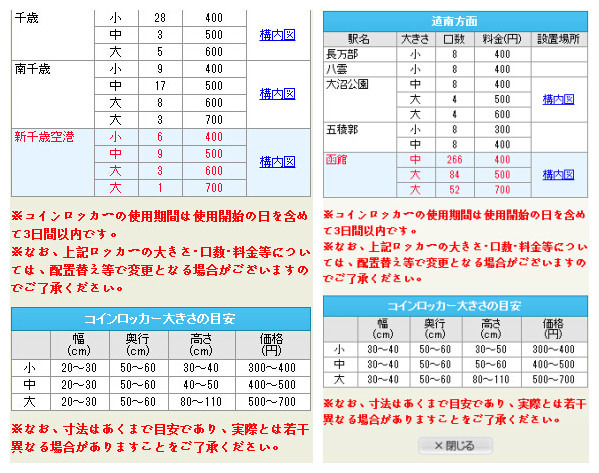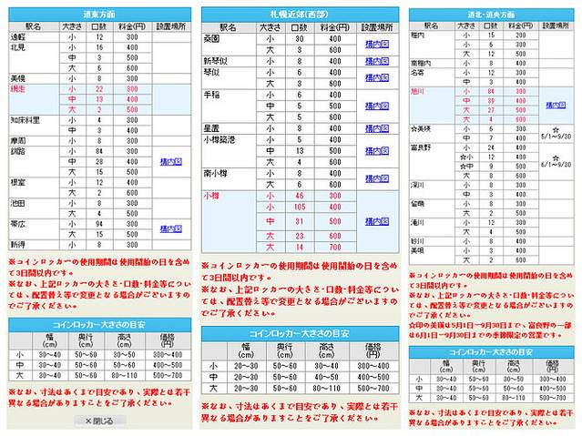 JR站内地图及储物箱分布:http://www.jrhokkaido.co.jp/network/locker/index.html