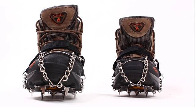 然后不要忘记手足和头部的保暖,这些末梢更容易感受到气温下降,所以帽子手套围巾也是必不可少的,还有就是鞋子了,普通UGG是很多女孩的冬季最爱,不过普通款的UGG既不防滑又不防水,华而不实绝对会让你在雪地里又湿又滑叫苦连天,所以最好的选择是那种防水防滑的雪地鞋。如果一定要华丽登场,可以准备一个下面的装备,关键词:淘宝搜——冰爪,雪套。