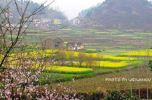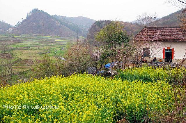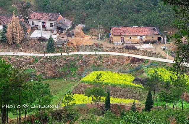 沿路会路过许多乡间人家。几间平房,门前是一小片油菜花。