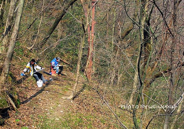 这是许多登山人第一次休息的所在。我们也不例外,在这里小坐10分钟,喝水,吃些甜的食物,补充了一下体力。