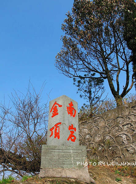 而在通往金顶之道上,如果想和南岩宫合影,最佳所在就是这块“观景石”了。