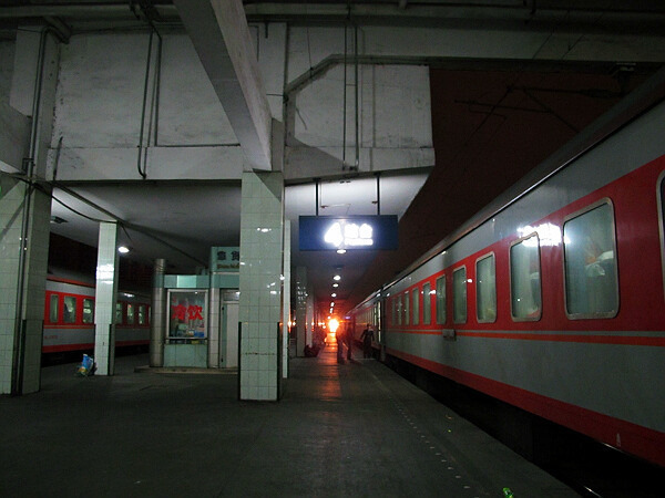 因为列车员完全没有通知,到站后也不做声。我自己跑去车门处询问之后,才知道已经到达。赶紧跑回自己的铺位,收拾背包跑下车,刚刚落地,车门就哐当关闭,列车即刻缓缓驶离。