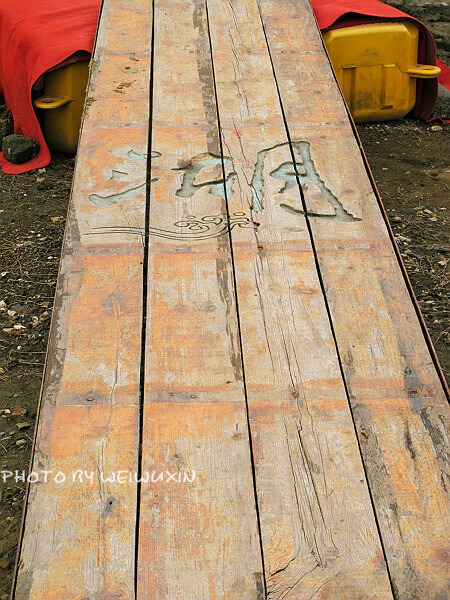 这样的木板实际上是有三块的,分别写着“太”“极”“湖”,连在一起充当了类似栈桥的作用。