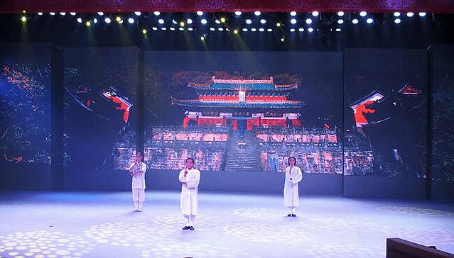 舞台背景中的画面就是武当山紫霄宫的大殿,第二天我们就会去到。