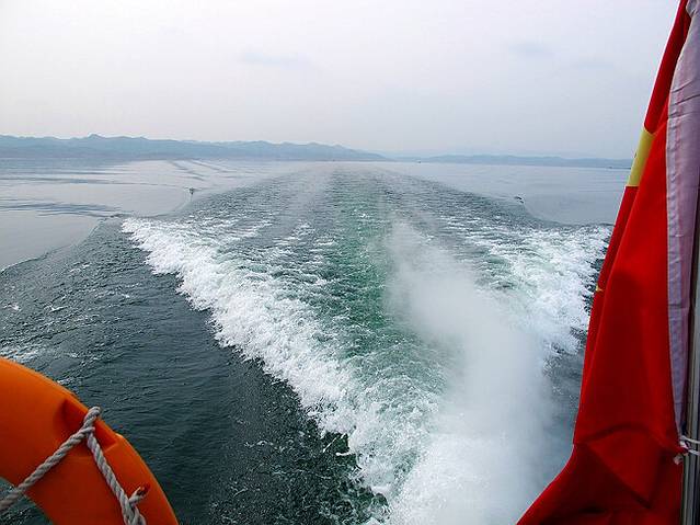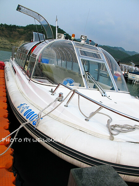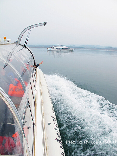 继续行船,远处的游船同样是太极湖的,那快艇游船据说一小时的租金要1万呢!这么奢侈的享受果然是有钱人才能体会的。